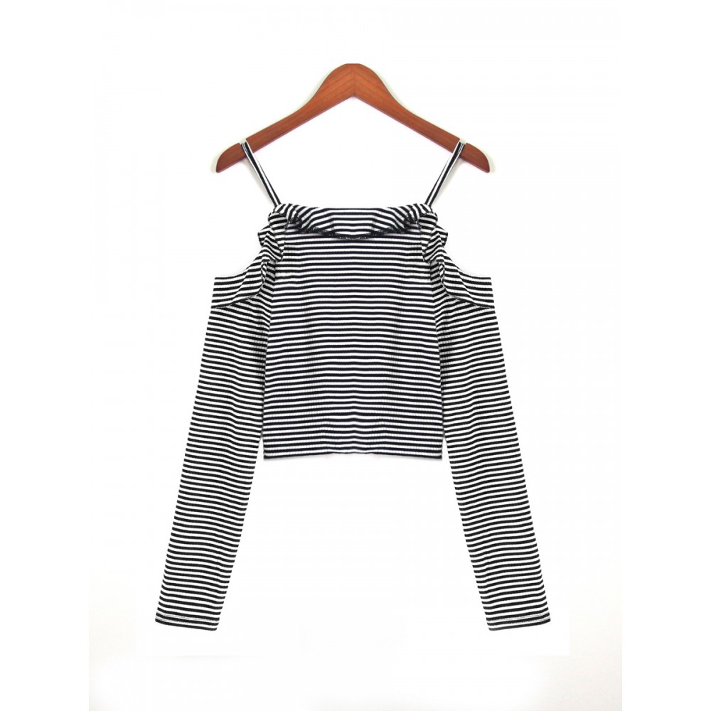Autumn One-Shoulder Off-The-Shoulder Striped T-Shirt