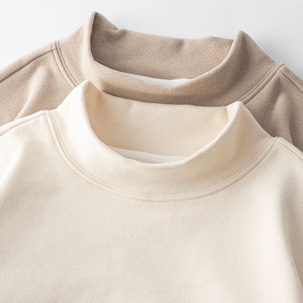 Double-Sided Velvet Half Turtleneck Long-Sleeved T-Shirt Heavy Solid Color Round Neck Casual Bottoming Shirt