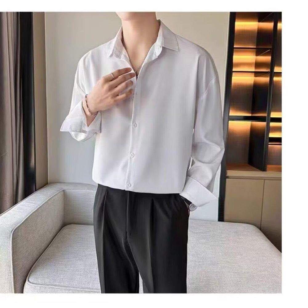 Men's Drapey Ice Silk Short-sleeved Wrinkle-resistant Shirt