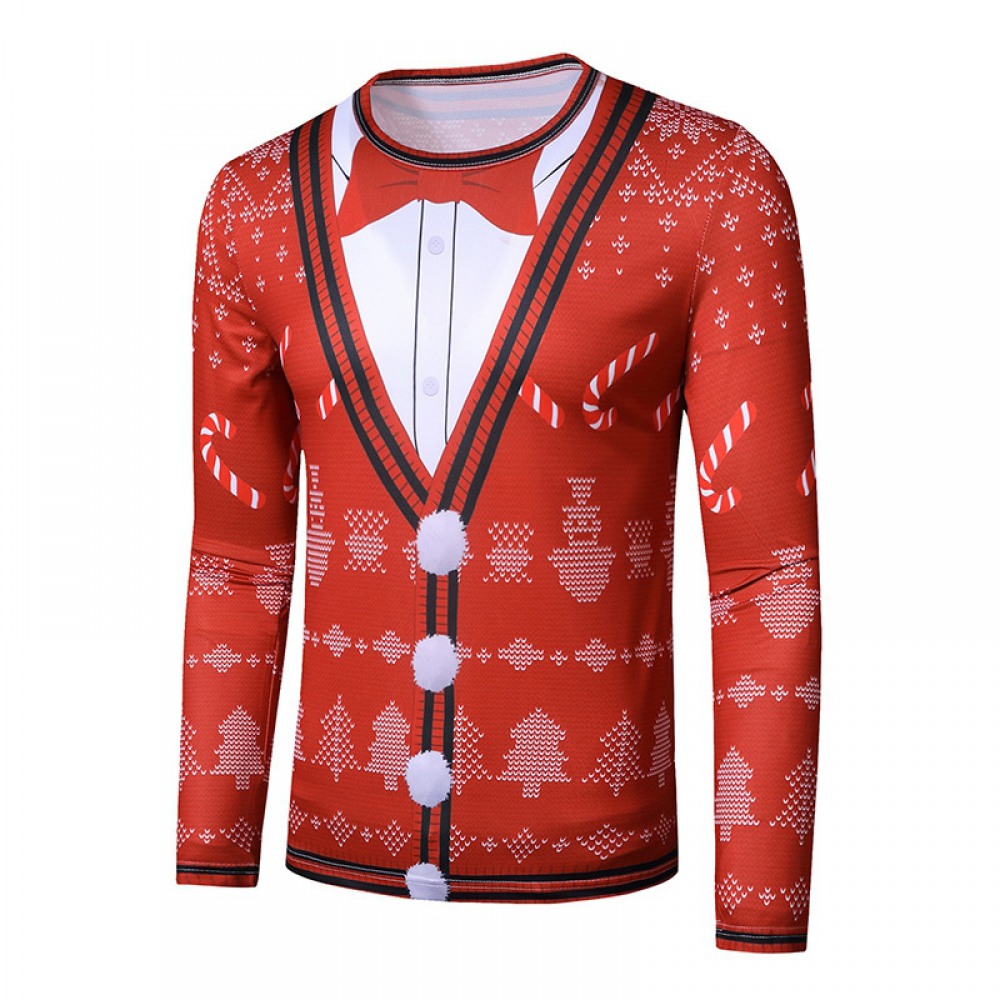 New 3D Personality Printing Fashion Men's Christmas Long-Sleeved T-Shirt