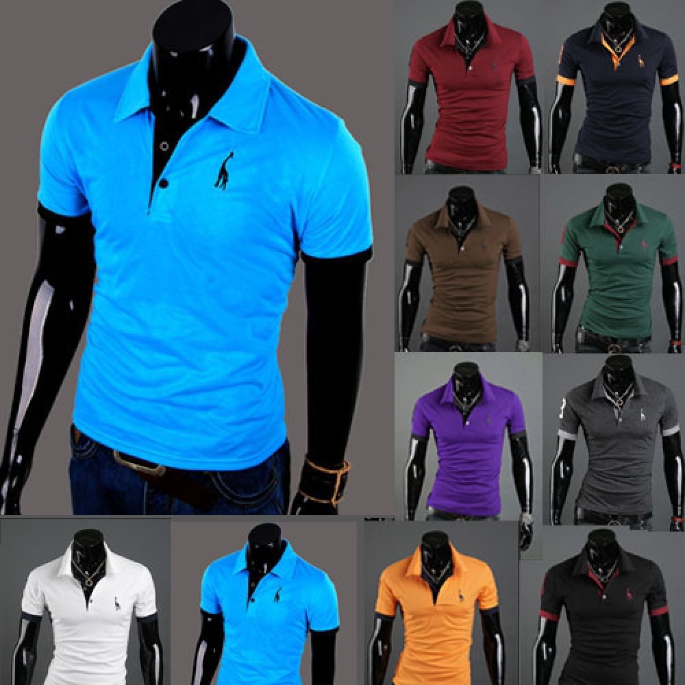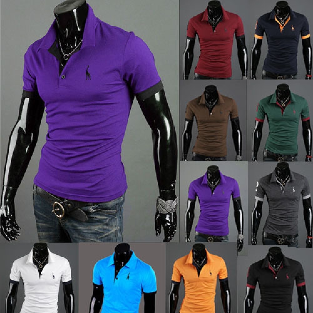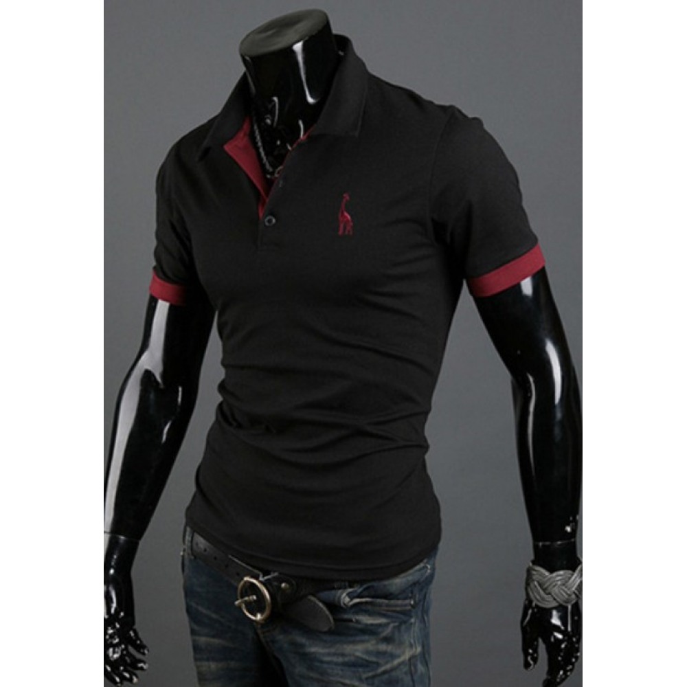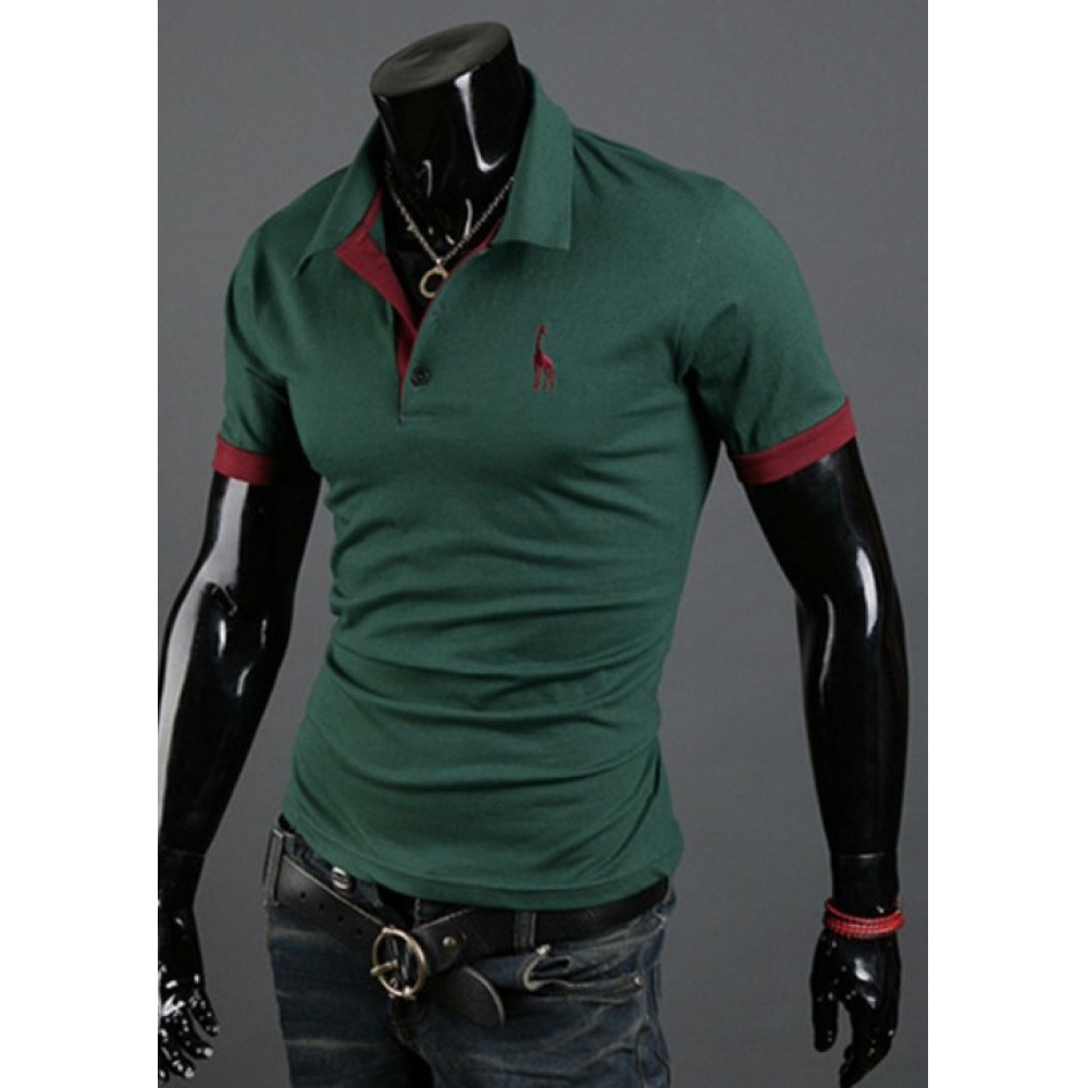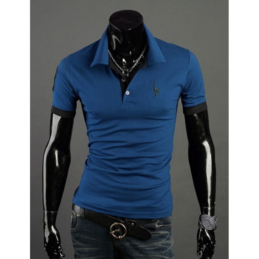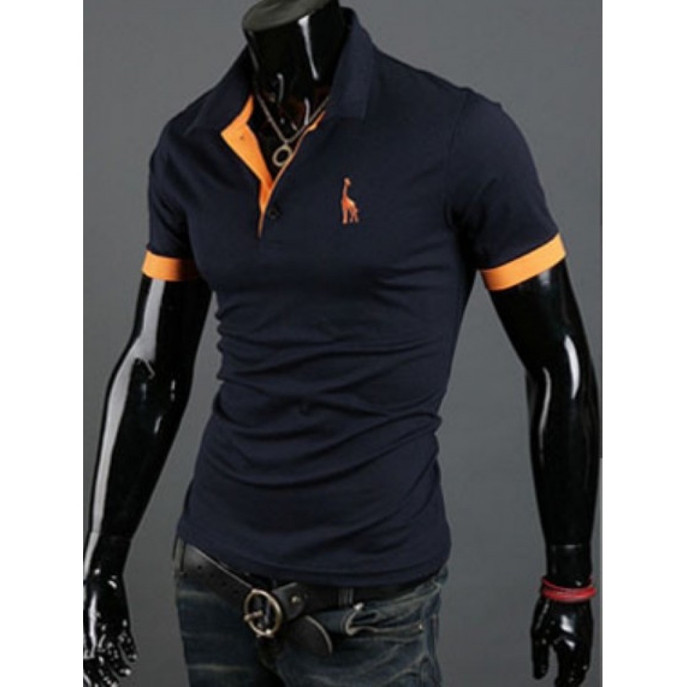 Summer Men's Personality Hit Color Lapel Short-Sleeved T-Shirt