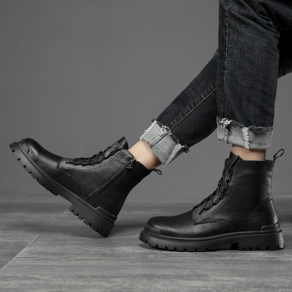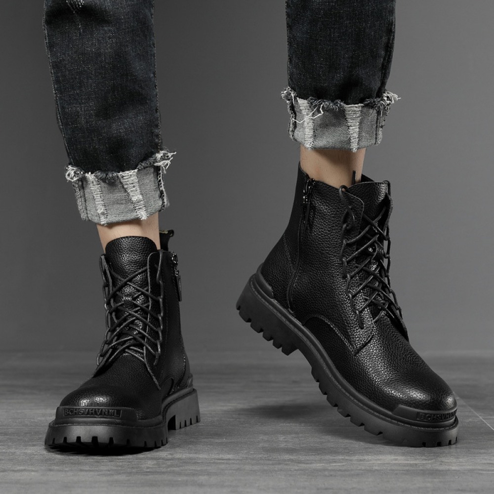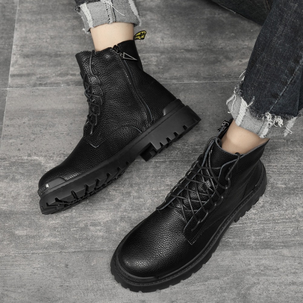 Autumn New Boots Casual Trendy Shoes Side Zipper British Leather Boots Personality Men's Shoes