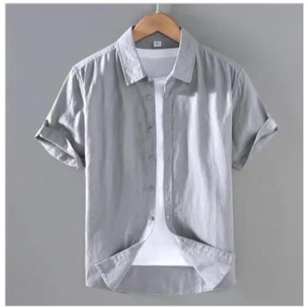 Breathable Linen Shirt Men's Short Sleeve Slim Fit Shirt