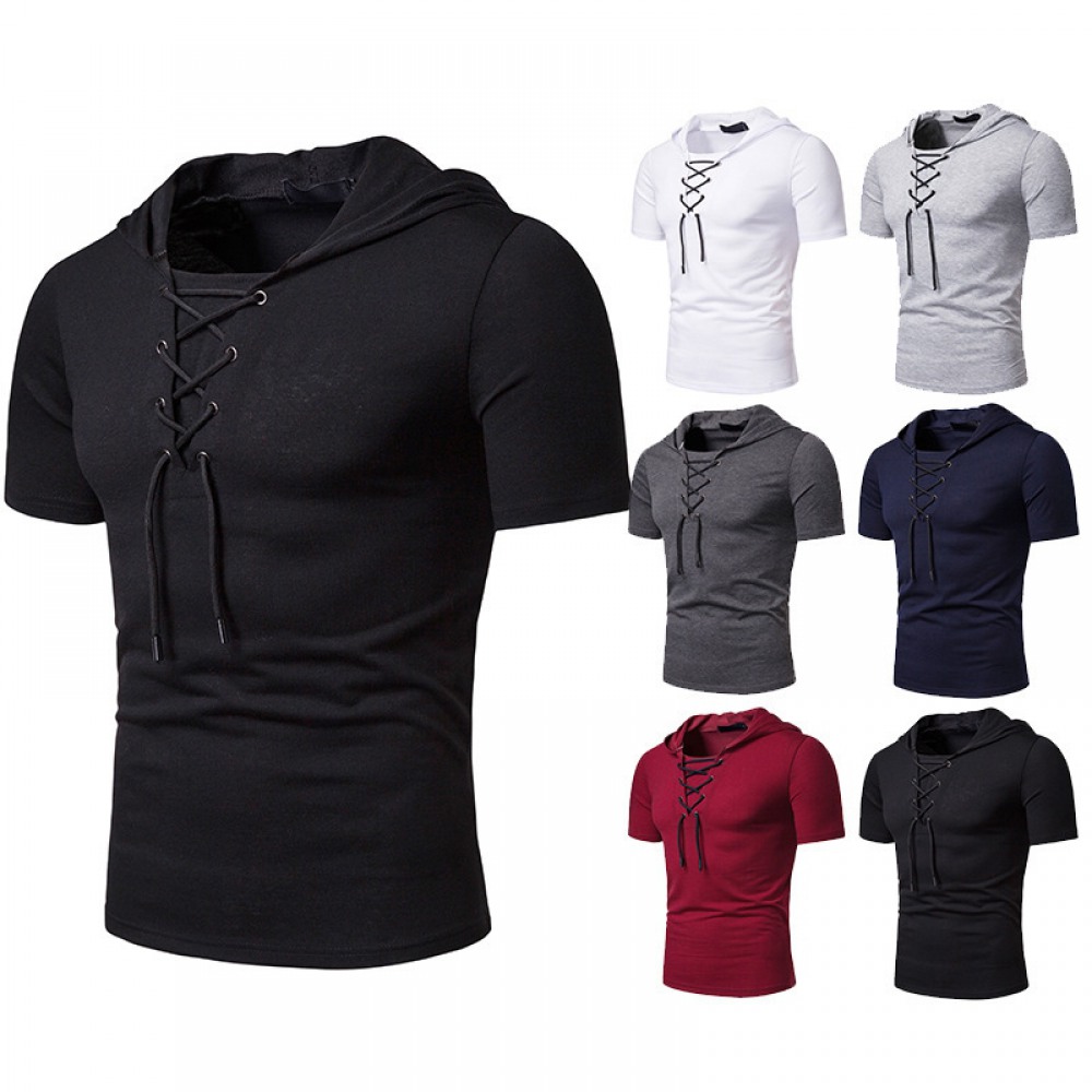 New Men's Hooded European Size Loose Lace Short Sleeve T-Shirt