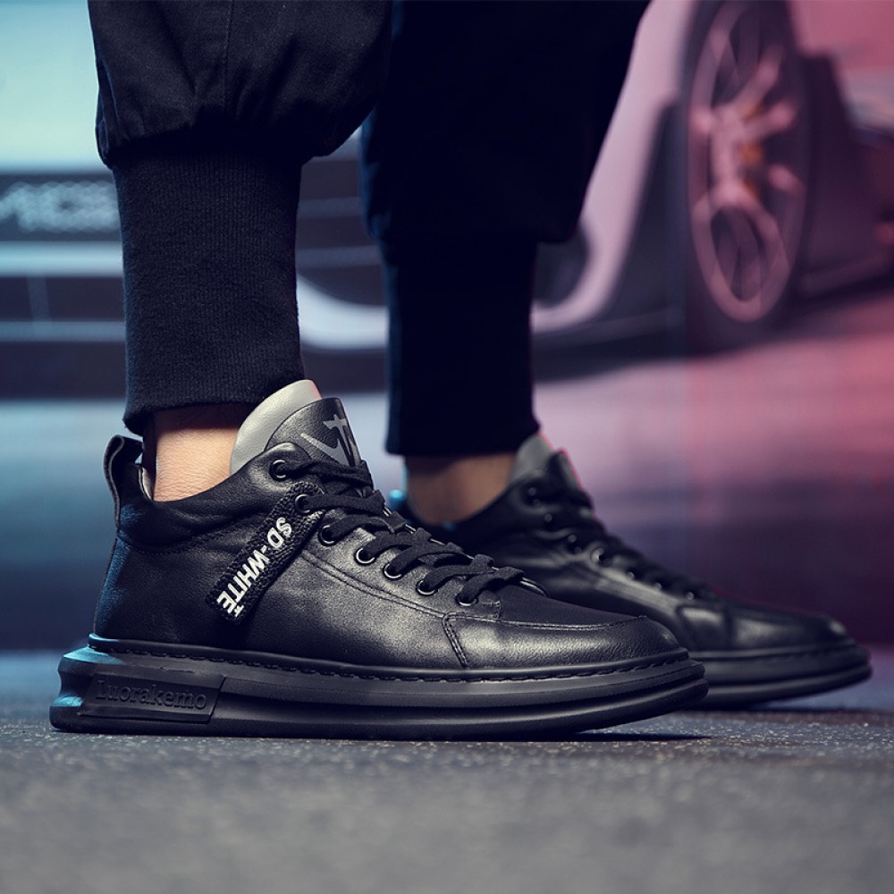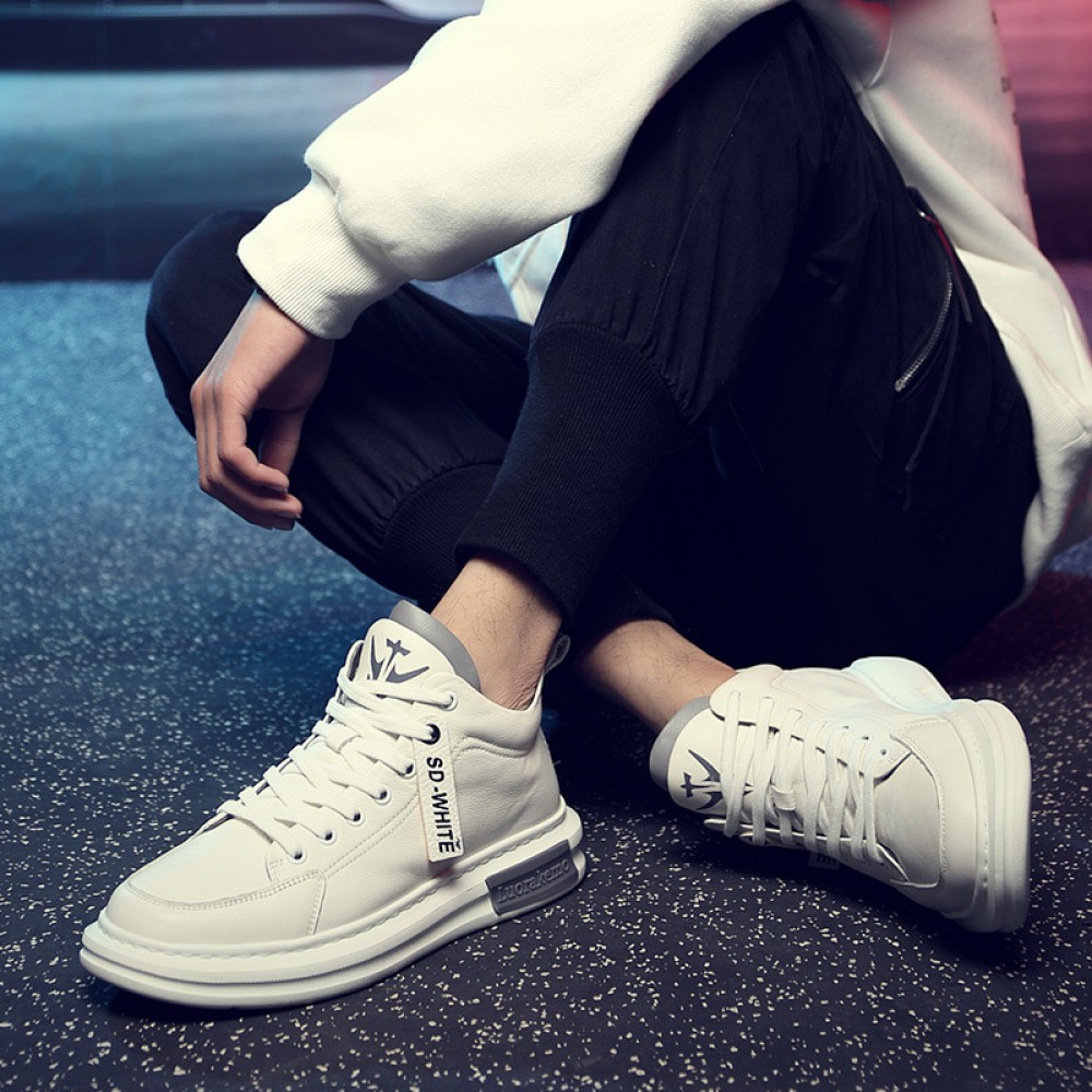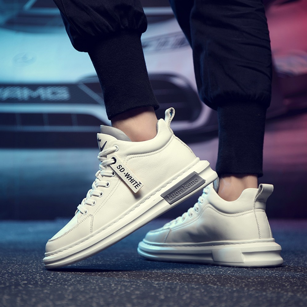 Men's Leather Board Shoes Trendy White Casual Shoes