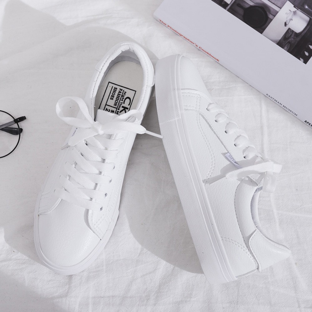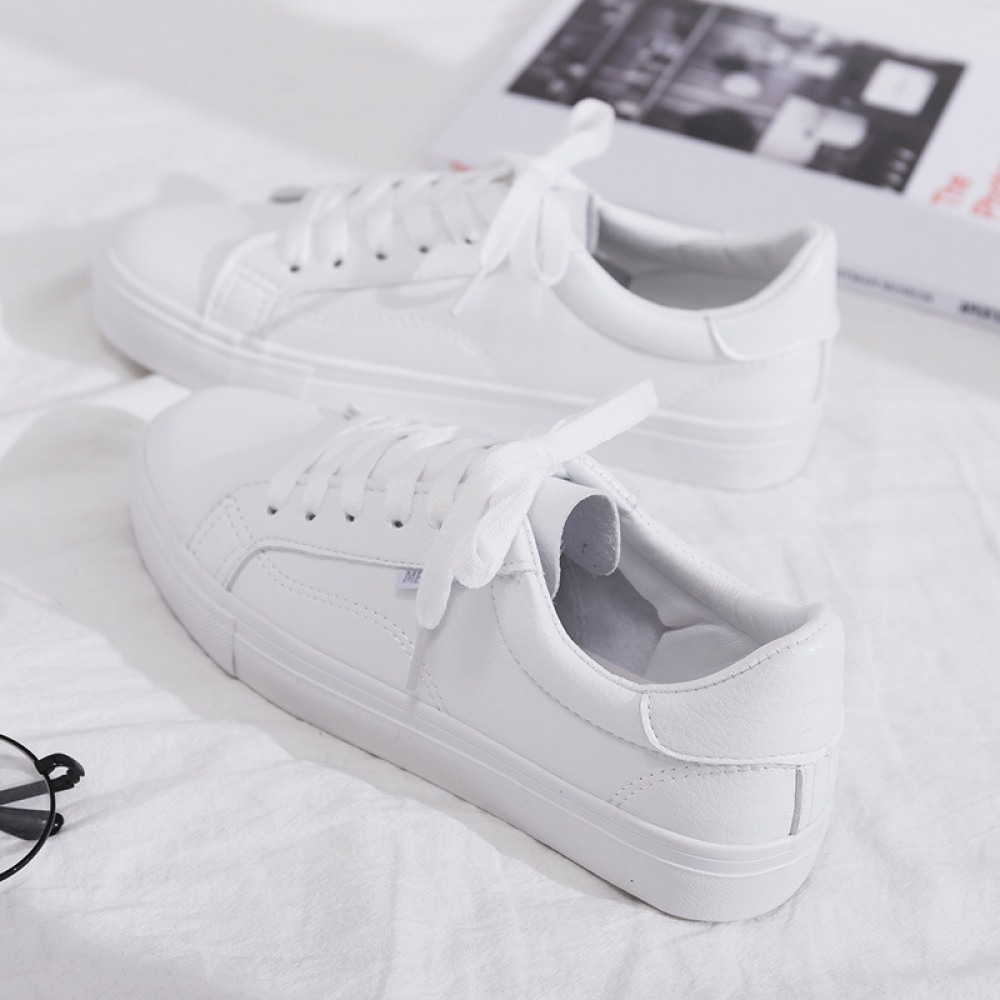 Spring New White Shoes Female Leather Student Shoes Female Running Flat Shoes Casual Shoes